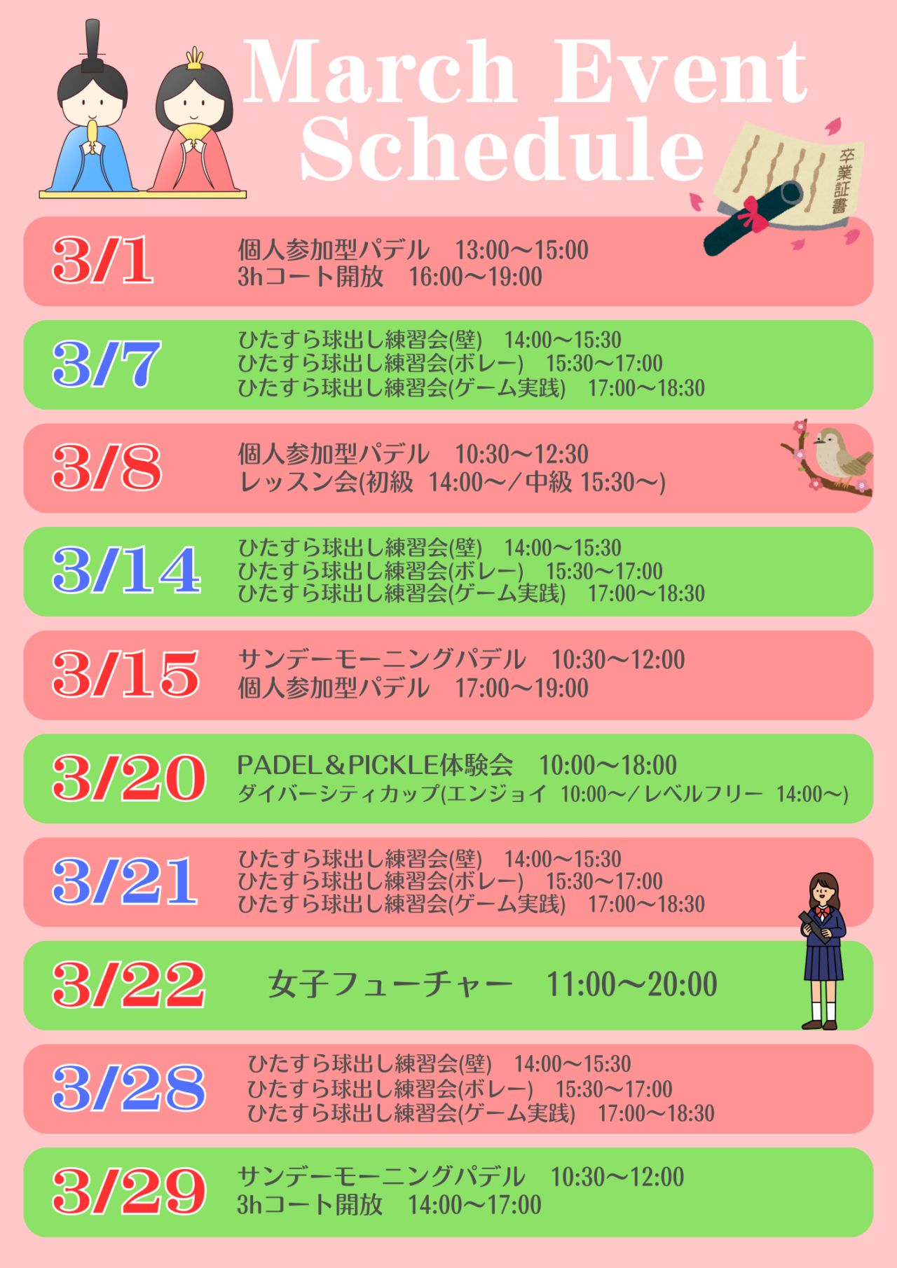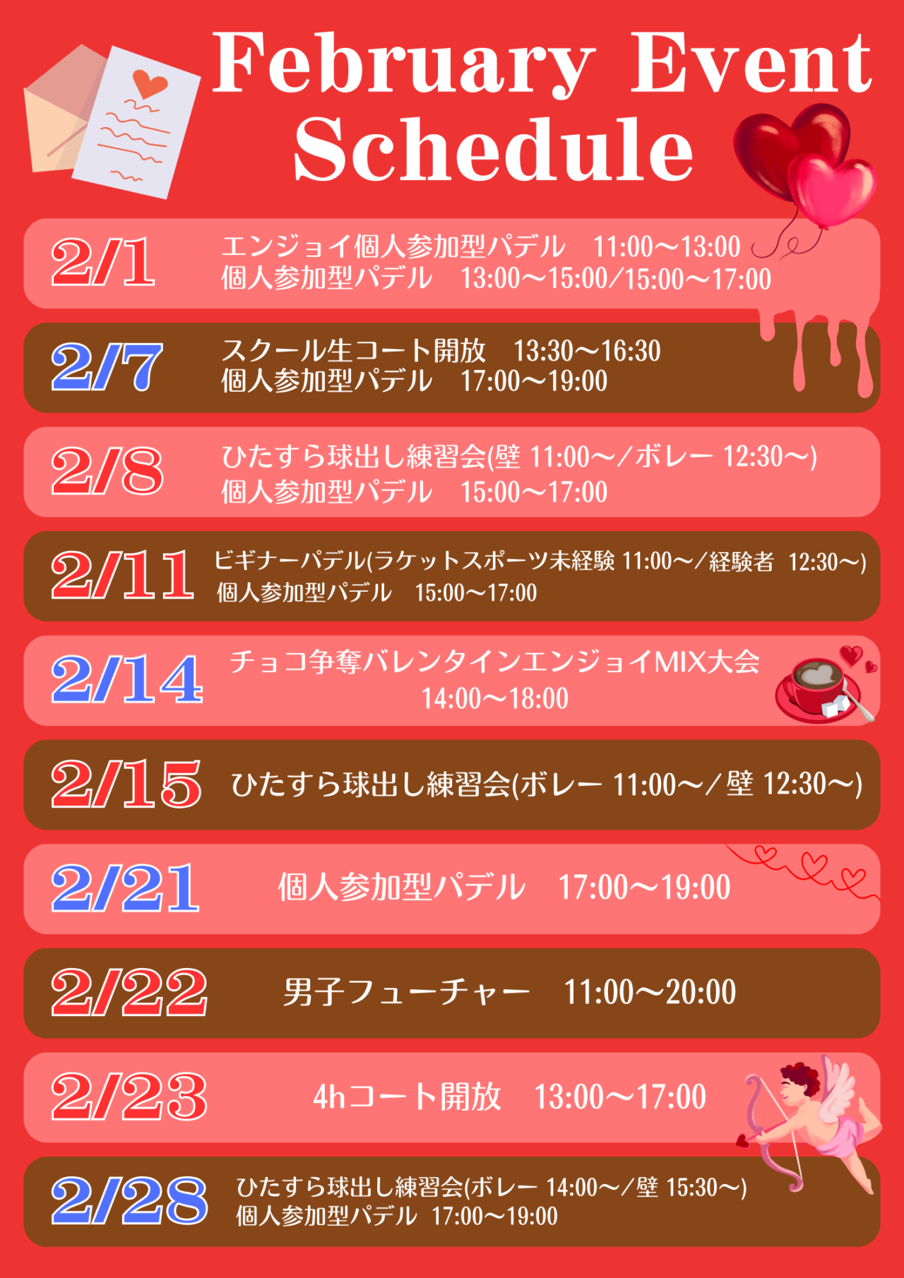 👇パデル福岡が主催する【週末・祝日イベント情報】です♪